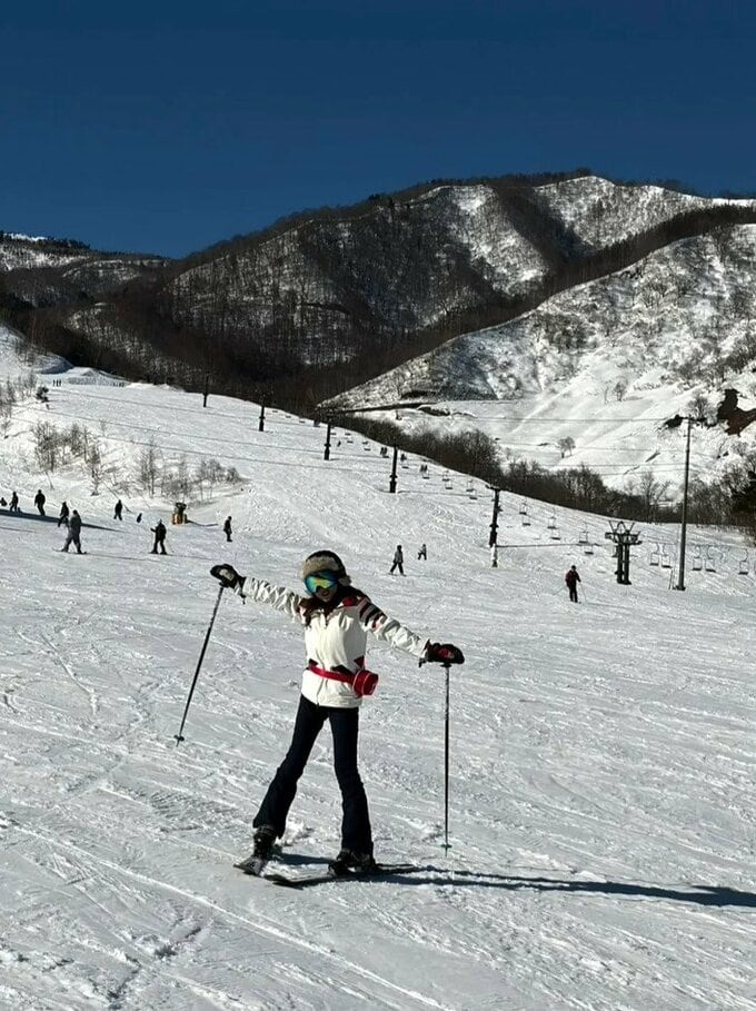 投稿された画像では、加護亜依さんが、スキーを楽しんだり、アイスを食べたり、料理やケーキを準備する様子などが見て取れます。