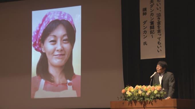 「45年の途中までは順風満帆な人生だったと思います。でも2014年6月22日、25年間連れ添ってきたうちの奥さん、ママリンって呼びますけど、…乳がんで他界することによって、そこからもう人生変わっていくんですよ」