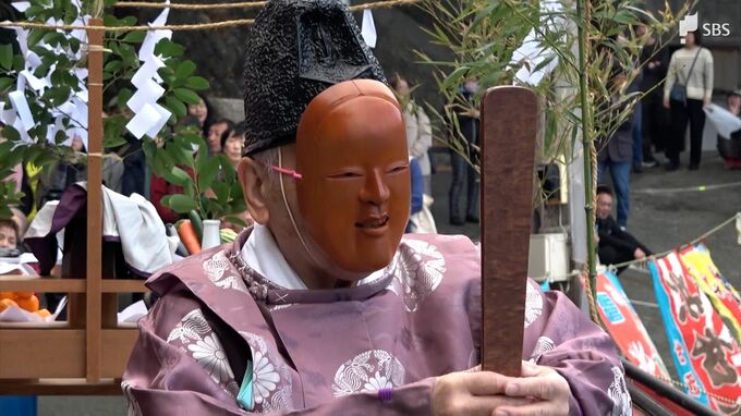 「仲直りの儀」は毎年、2月23日の「富士山の日」に行われていて、23日はあいにくの曇りの空で、富士山は見えませんでしたが、「磐長姫」の面をつけた神職が、仲直りの願いを込めました。