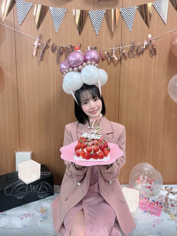 投稿された画像では、バースデーケーキを手に、笑顔を浮かべる、岡田紗佳さんの姿が見て取れます。