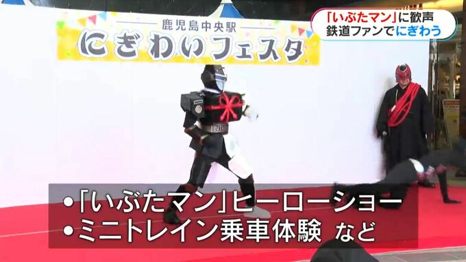 会場では特急「指宿のたまて箱」をモチーフにした鉄道ヒーロー「いぶたマン」のヒーローショーや、九州新幹線ミニトレインの乗車体験などが行われ、鉄道ファンの子どもたちが楽しんでいました。