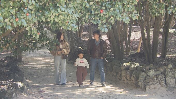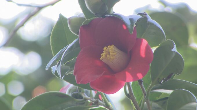 まだ花は少ないものの、訪れた人はツバキを見ながら思い思いに楽しんでいました。