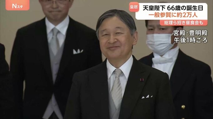 天皇陛下はきょう、66歳の誕生日を迎えられ、皇居で一般参賀が行われました。「誕生日にこのように来ていただき、皆さんから祝っていただくことを誠にありがたく思います。雪の事故などで被害に遭われた方々に心か…