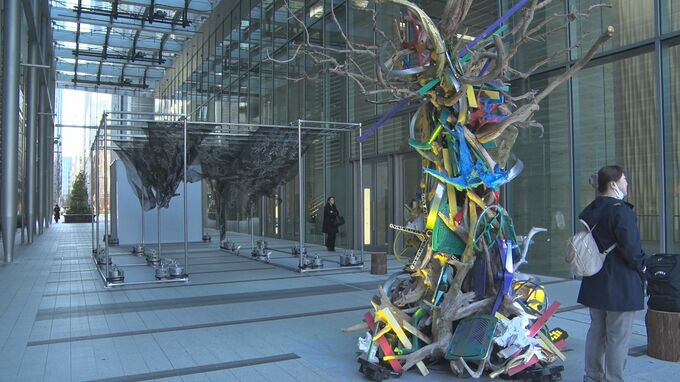 持続可能な社会を目指す山口県周南市の企業が、廃棄物を使ったアート作品の展示会を東京で開いています。