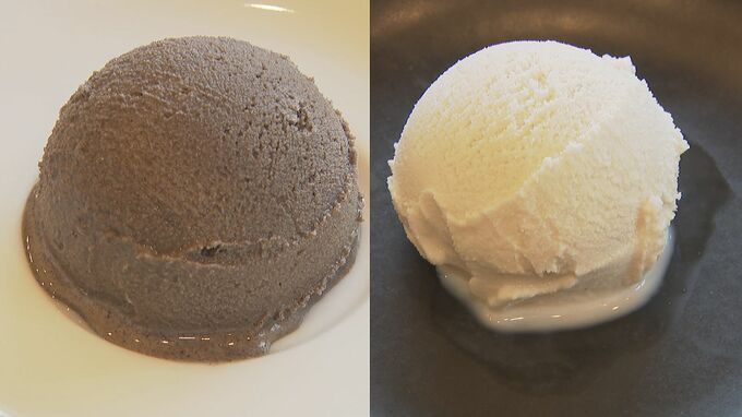 アイスは2種類あり、ビワの葉を細かく砕いて練りこんだ「びわの葉ぶれんど」