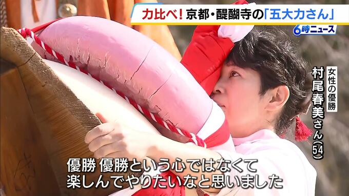 京都の「醍醐寺」では五大明王に「力」を奉納する恒例の「五大力さん」が行われました。 力いっぱい持ち上げているのは巨大な鏡餅です。男性は約150キロ、女性は90キロの鏡餅を持ち上げ、その時間の長さを競…