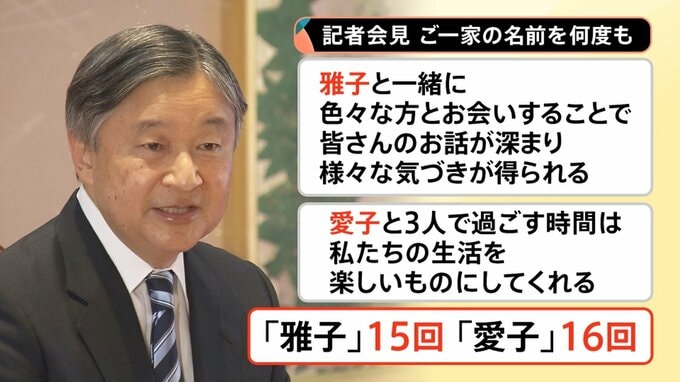 今回の会見では「雅子」と15回、「愛子」と16回、それぞれのお名前を何度も出されていました。