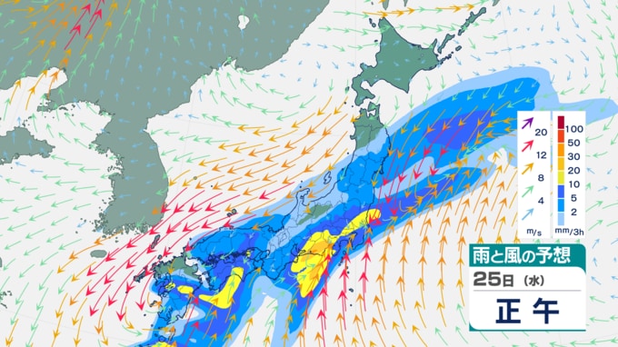25日(水)は低気圧が九州を通って四国の南へ進み、大気の状態が非常に不安定になる見込みです。