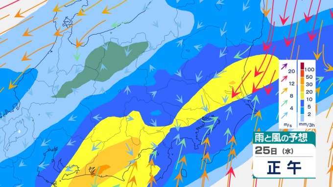 明日25日(水):南岸低気圧が直撃 大雨の恐れ