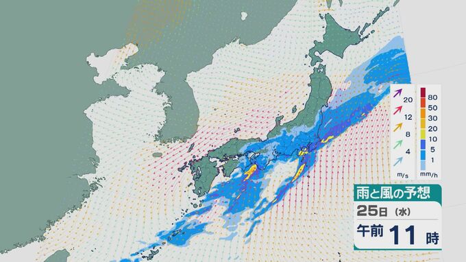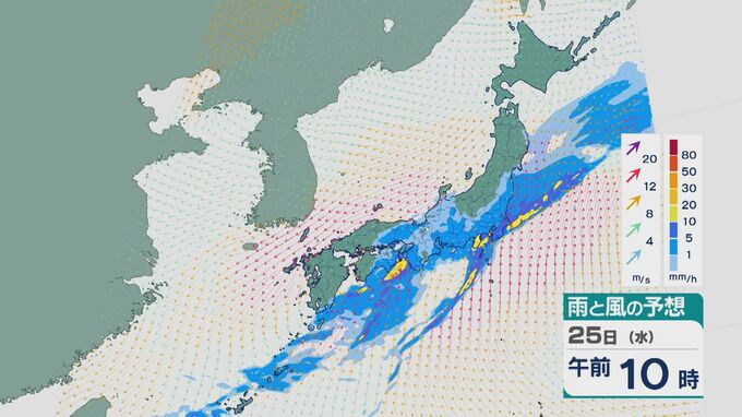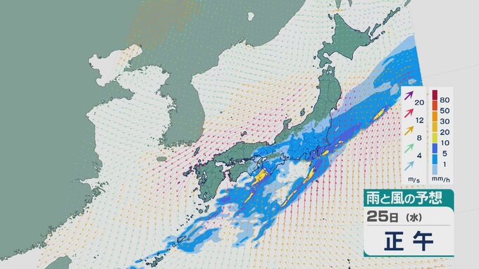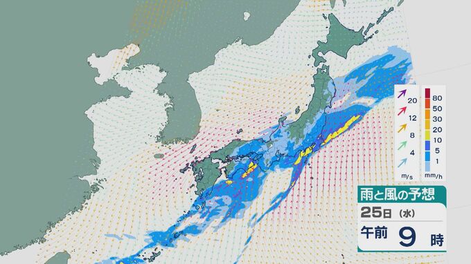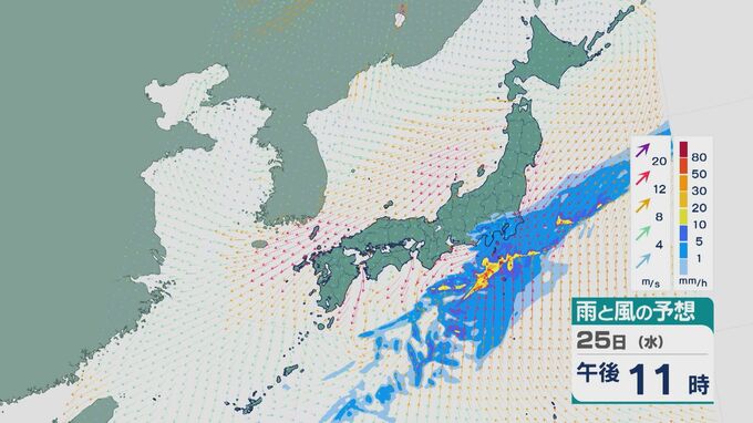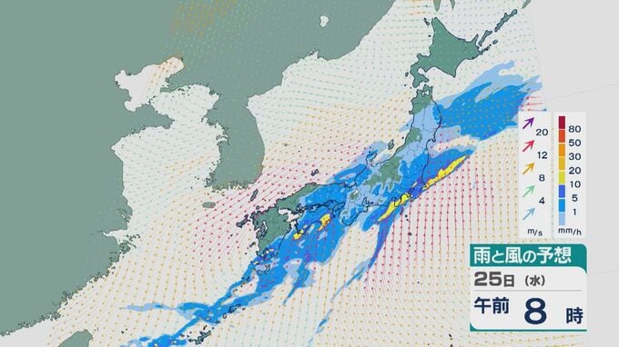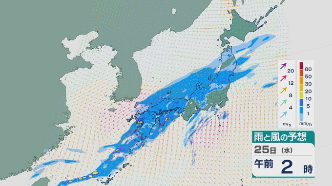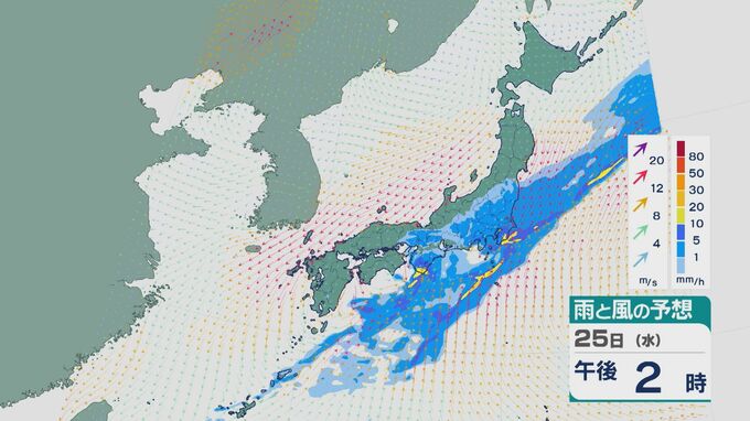 25日(水)は低気圧や前線の影響で西日本から東日本で大気の状態が非常に不安定に 乾燥が続く関東などでは「恵みの雨」に 雨と風シミュレーション 北陸放送 2026年2月24日(火) 09:38 国内 25日は、雨雲が次第に東へと進み、未明から明け方にかけては東海や東北で、その後明け方からは関東でも雨が降り、沿岸部では降り方が強まるところもあるでしょう。 午後以降も、関東では雨が残るでしょう。