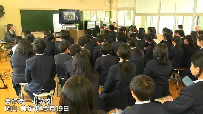 美作第一小学校で今月19日に開かれた平和について考える学習会です。