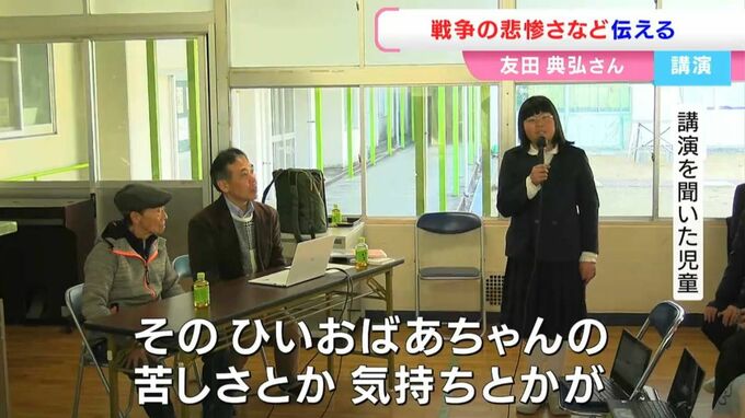 友田さんの体験談を聞き、児童たちは平和の大切さについて改めて考えていました。