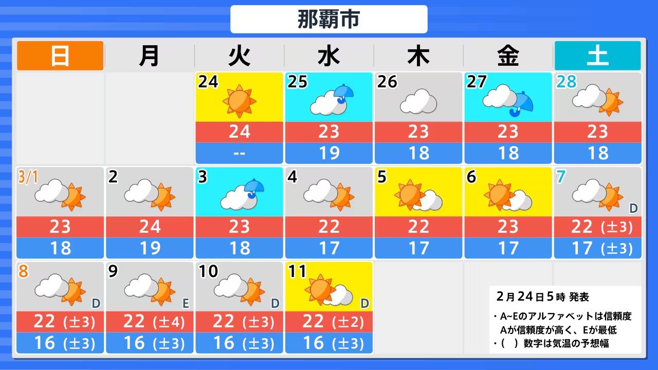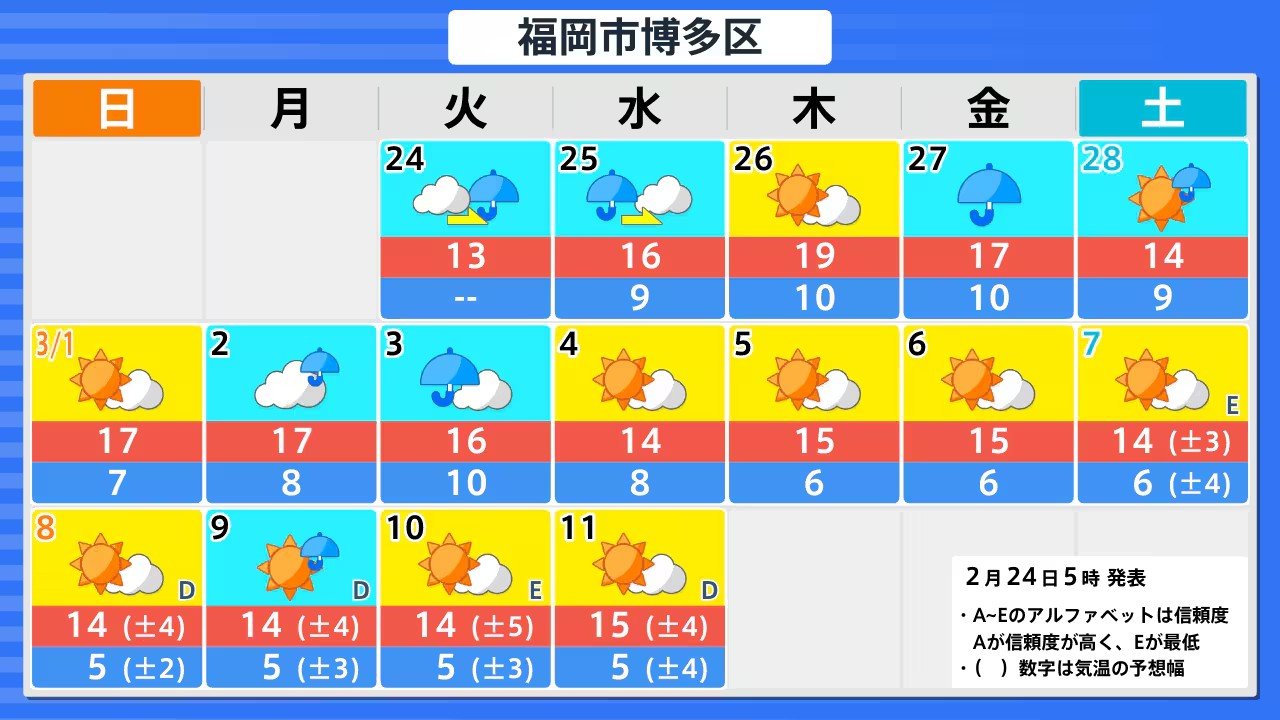 【雨風情報】きょう(24日)から全国的に雨模様 24日(火)~3月1日(日)3時間ごとの雨風シミュレーション 28日(土)も広い範囲で雨か 週末の天気は?【気象庁週間天気予報 24日午前11時更新】 RSK山陽放送 2026年2月24日(火) 11:00 国内 札幌・仙台・東京・愛知・大阪・広島・福岡・那覇の16日間天気予報 24日(火)~3月1日(日)3時間ごとの雪雨シミュレーション 24日(火)~3月1日(日)3時間ごとの雪雨シミュレーション