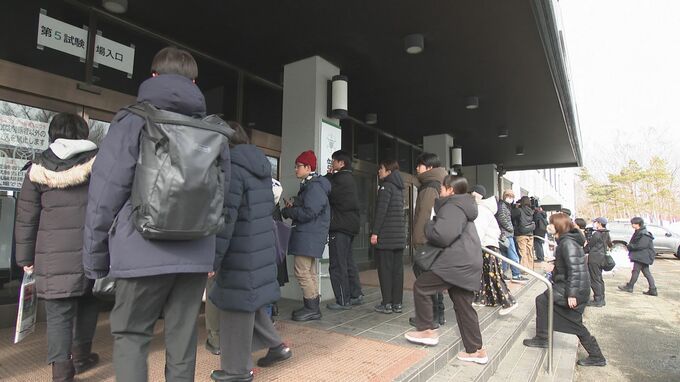 「あすの試験に備えて、試験会場には多くの人が訪れています」