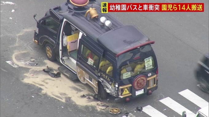 けさ、福岡県遠賀町の交差点で幼稚園バスと乗用車が衝突する事故があり、園児9人を含めた14人が病院に運ばれました。現場から中継です。記者「幼稚園のバスは先ほどレッカーされ、移動しました。奥に衝突したとみ…