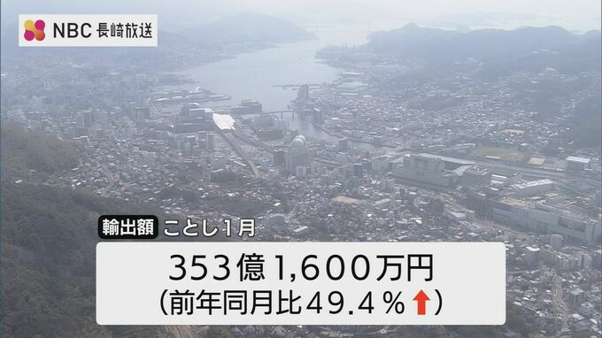 長崎税関によりますと、2026年1月の長崎県内の輸出額は、353億1600万円で、前の年の同じ月と比べて49.4%増加しました。