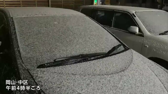 瀬戸内地方は冬型の気圧配置から上空に強い寒気が流れ込み、山沿いを中心に積雪が観測されたほか、岡山市中心部でもけさ(23日朝)早く強い風とともに雪がちらつきました。