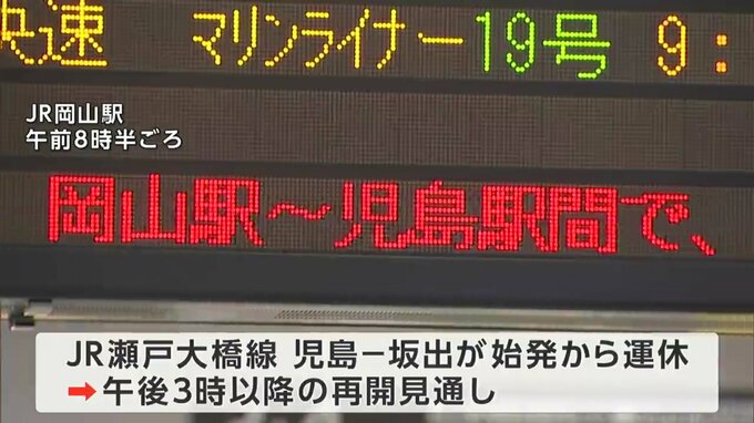 このクリスマス寒波の影響で、交通機関に乱れがでています。JRでは瀬戸大橋線が始発から児島ー坂出間で運転をストップしていて、再開は午後7時以降の見通しとなっています。(午後4時50分現在)