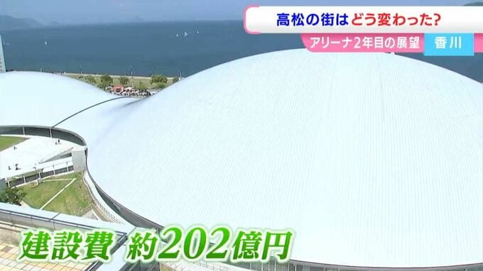 香川県の新しい体育館として、202億円をかけて建設されました。中四国最大級の1万人を収容可能。コンサートにスポーツに、民間企業の力を借りながら地域のにぎわいを創出します。開業1年目のインパクトは大きいものでした。