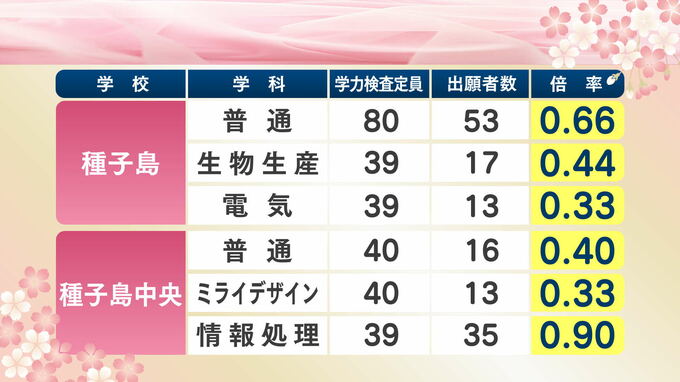 鹿児島県公立高校入試最終倍率【全校掲載】高倍率は玉龍、鹿児島中央、鹿児島南(体育)、鶴丸、甲南【令和8年度高校受験志願倍率と出願者数】2026最新 南日本放送 2026年2月24日(火) 14:35 国内 熊毛学区の最終出願倍率(最新) 種子島、種子島中央、屋久島です。