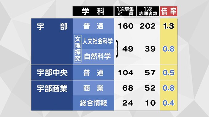 【全校掲載】山口県公立高校入試2026志願倍率発表 全日制は0.96倍 徳山・文理探究(理数)2.1倍 山口・文理探究1.4倍 【2月24日発表】 テレビ山口 2026年2月24日(火) 16:35 国内 宇部・普通は1.3倍 文理探究は0.8倍