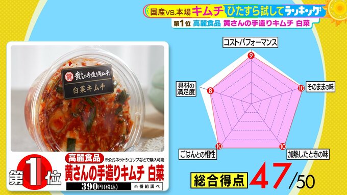 そして第1位は、高麗食品の『黄さんの手造りキムチ 白菜』(税込390円 ※番組調べ)。