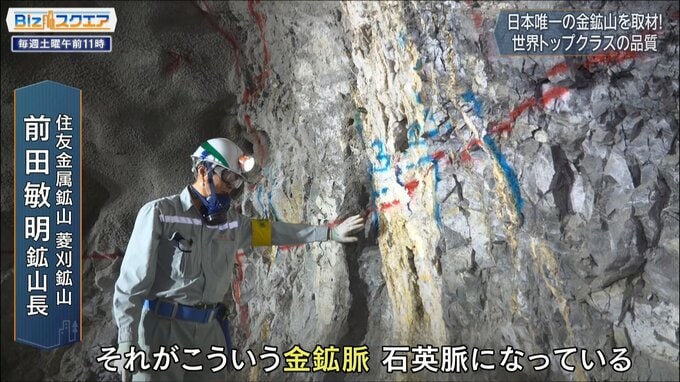 「元々は岩盤に亀裂があって、そこを熱水が下から上がってきて、温度が下がり圧力が下がり熱水の中で溶けなくなり沈着していったのが“金鉱脈”、石英脈になっている」