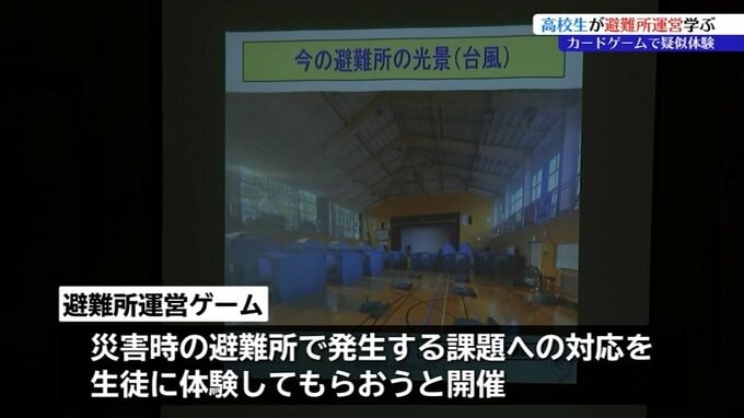 このゲームは、災害が発生した時に多くの人が身を寄せる避難所で発生する課題への対応を生徒に体験してもらおうと開催されました。