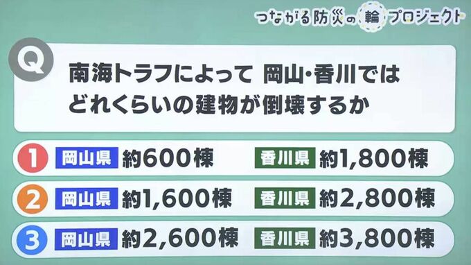 災害への備えについてクイズで覚える「防災クイズ」です。(前田唯キャスター)先日南海トラフ巨大地震について岡山県の新たな被害想定が発表されましたが、今日はその南海トラフ地震に関する問題です。地震発生時…