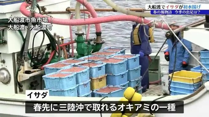 三陸に春の訪れを告げる今シーズンのイサダ漁が解禁され、24日初水揚げされました。