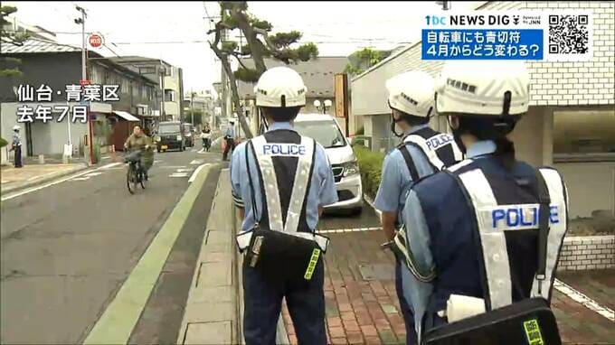 こちらの自転車の男性は、車が来ているのに一時停止せず危険と判断され、警察官に摘発されました。