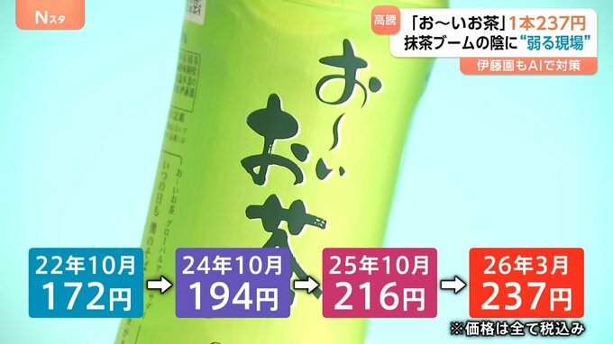 「ペットボトルのお茶」が来月から値上げされます。一本の価格は237円。背景にあるのは、「抹茶ブーム」の陰で生産の現場が弱っている現実でした。
