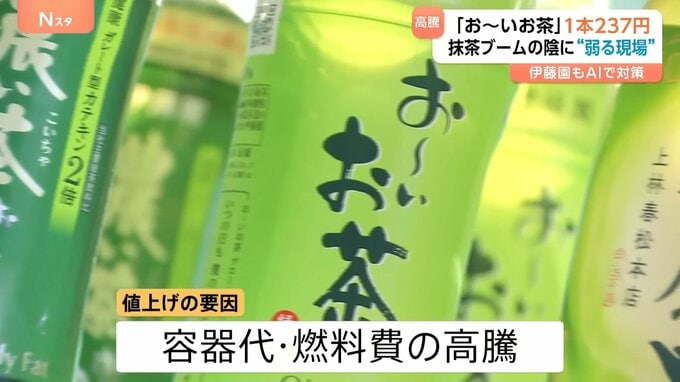 “ペットボトルのお茶” 来月値上げ 「お~いお茶」237円に 主な要因は容器代や燃料費の高騰も…世界的な抹茶ブームの陰に弱る現場 TBSテレビ 2026年2月24日(火) 17:21 経済 容器代や燃料費の高騰のほかに… 値上げの主な要因は容器代や燃料費の高騰ですが、さらに追い打ちをかけるのが… 世界的な抹茶ブームもあり、茶葉自体が不足しているのです。業界にとっては追い風に見えますが、現場は深刻な危機に瀕していました。