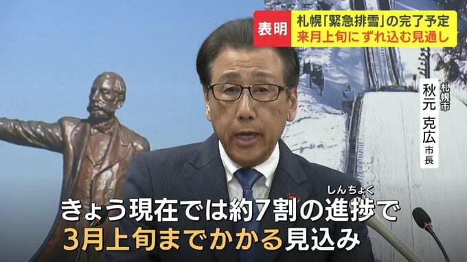 今月終了予定とされていた札幌市の『緊急排雪』は、来月上旬にずれ込む見通し であることがわかりました。