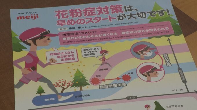①花粉の飛ぶ前から治療や薬の服用を始めると、発症を遅らせることができる
