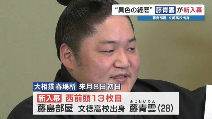 3月8日に初日を迎える春場所で新入幕するのは、藤島部屋所属で28歳の藤青雲です。