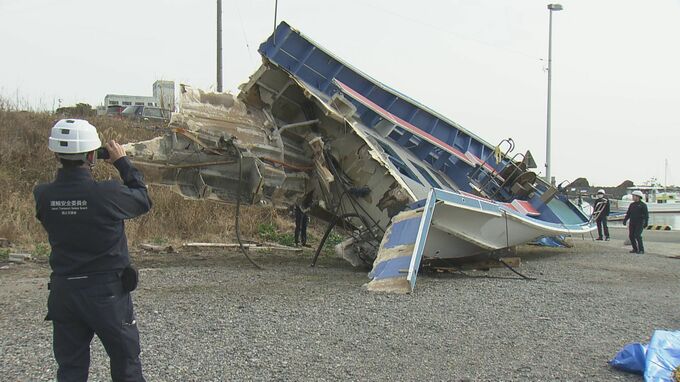 24日、国の運輸安全委員会が念入りに調べていたのは、事故で真っ二つになった釣り船の船首部分。3Dスキャンで撮影するなど、船が受けた損傷状況を詳しく調査しました。