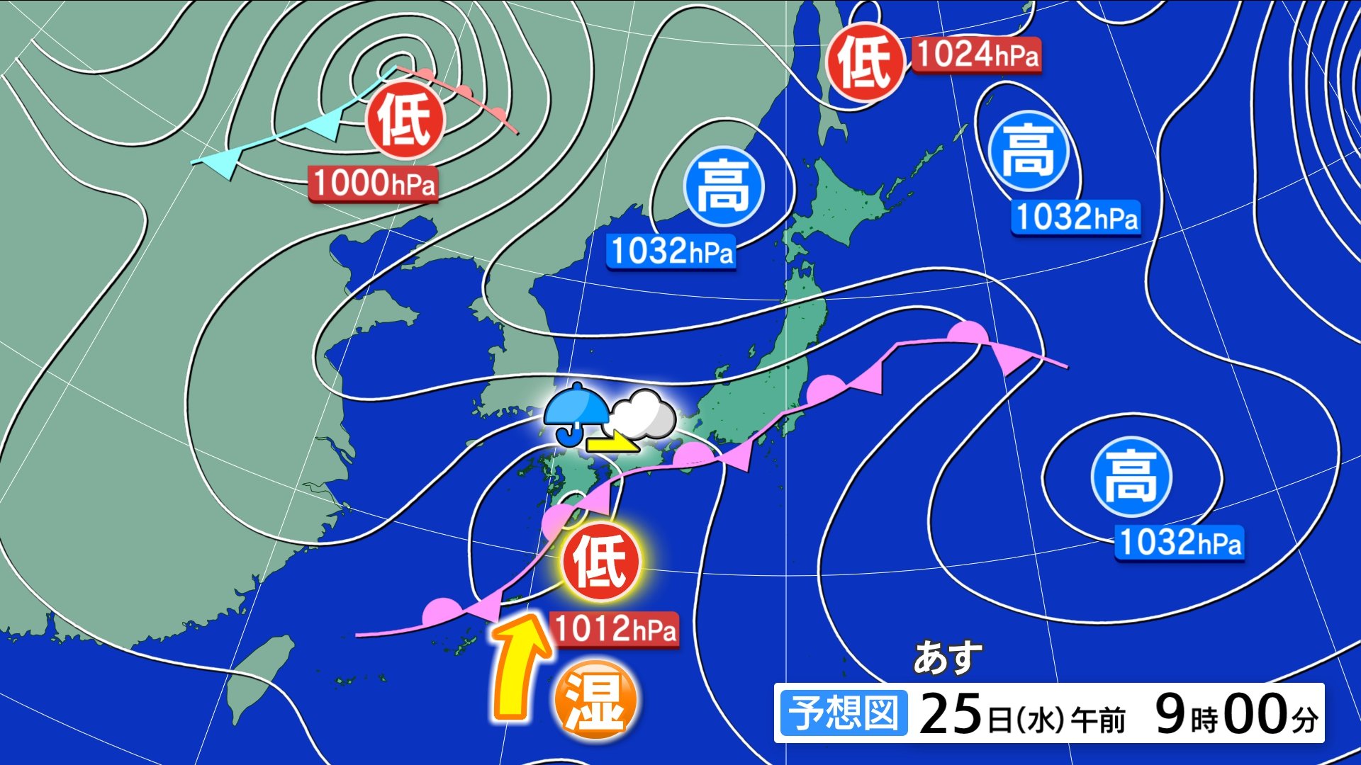 25日(水)昼前までまとまった雨 午後は次第に回復 気温高めも北風吹くとひんやり