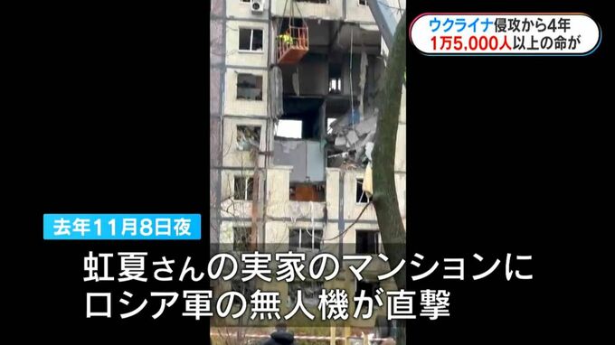 虹夏さんの故郷も戦火に巻き込まれつつあります。去年11月8日の夜、虹夏さんの実家のマンションにロシア軍の無人機が直撃。虹夏さんの部屋は離れていましたが、その衝撃で窓ガラスが割れるなど被害を受けました。