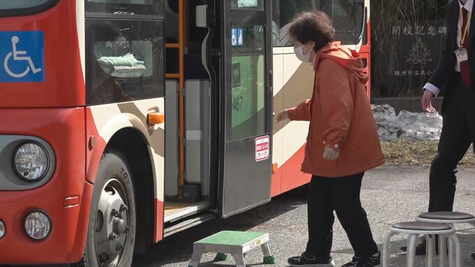 仮設住宅からほど近い小学校などに投票所として使われるバスが止められると、住民が車内に乗り込んで一票を投じていました。