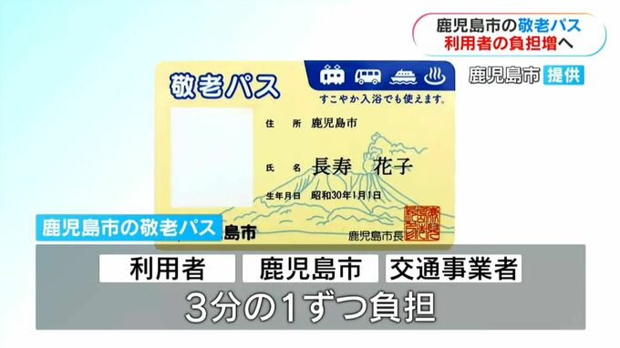 これまで、敬老パスは、利用者と鹿児島市、交通事業者がそれぞれ3分の1ずつ負担してきました。しかし、交通事業者の負担が来年度廃止されることになり、来年2月からは利用者が3分の2を負担することになります。