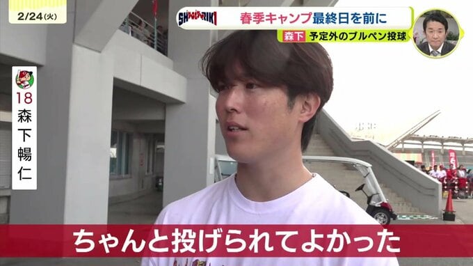 森下は「次からは実戦も入ってくる。相手チームに投げながら色々感じられたら」とキャンプ後を見据えていました。