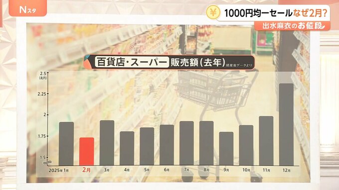 実際に百貨店・スーパー販売額のデータをみると、12月はかなりの販売額がありますが、2月は他の月に比べて少なくなっています。(2025年・経産省データより)
