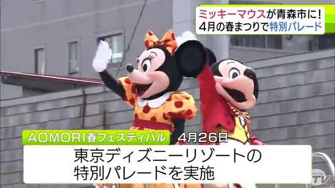 青森県にミッキーマウスがやってくる! 青森市の中心街で4月26日に開催される「AOMORI春フェスティバル」で東京ディズニーリゾートの特別パレードが実施へ 青森テレビ 2026年2月24日(火) 21:42 国内