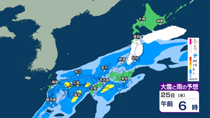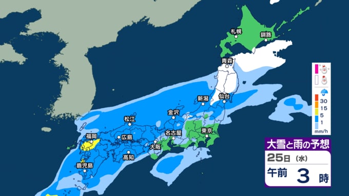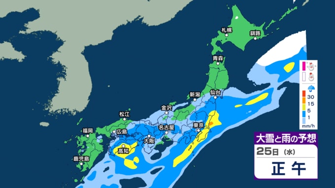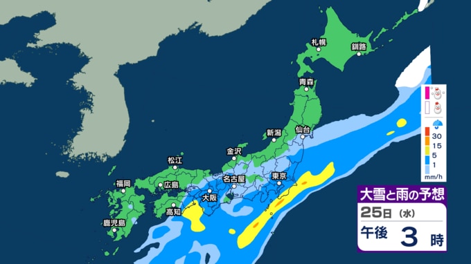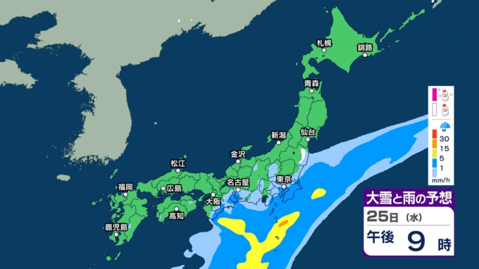 【今後の雨や雪は?】あす25日は関東など太平洋側で通勤通学の時間帯に雨脚強まるか “バケツをひっくり返したような”激しい雨の所も?【3時間ごとのシミュレーション・24日午後9時更新】