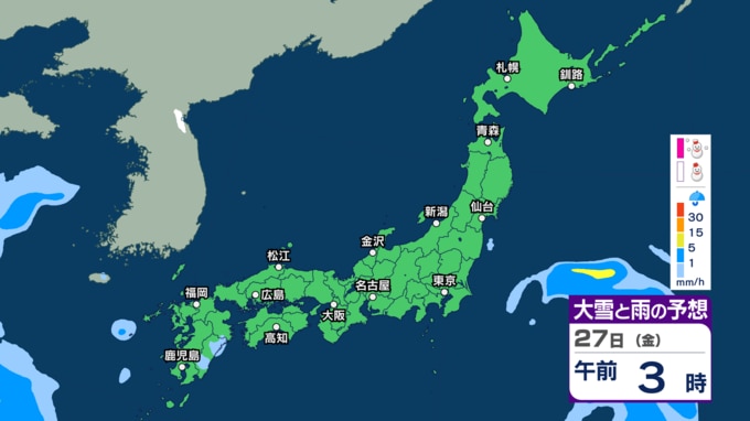 【今後の雨や雪は?】あす25日は関東など太平洋側で通勤通学の時間帯に雨脚強まるか “バケツをひっくり返したような”激しい雨の所も?【3時間ごとのシミュレーション・24日午後9時更新】