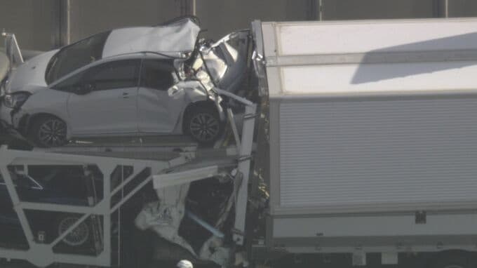 この事故でキャリアカーを運転していた54歳の男性会社員が搬送先の病院で死亡しました。また、渋滞の列の最後尾のトラックに乗っていた26歳の男性会社員が軽いけがをし、ほかの2台の乗用車に乗っていた男性2人にけがはありませんでした。