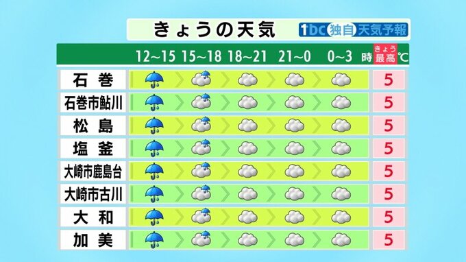 ■石巻:5℃ ■石巻市鮎川:5℃ ■松島:5℃