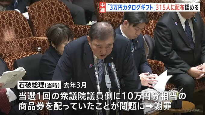 高市総理「1人約3万円のカタログギフト」衆議院選挙当選の自民党議員315人に配布認める 総理「法令上、問題ない」 自民党内からも「あまりに軽率だ」政権運営にダメージか TBSテレビ 2026年2月25日(水) 10:39 国内 去年、石破総理(当時)も10万円分の商品券を配り問題に 去年3月には、当時の石破総理が当選1回の衆議院議員側に10万円分相当の商品券を配っていたことが問題となり、謝罪する事態となっていて、野党側は高市総理の追及を強める構えです。