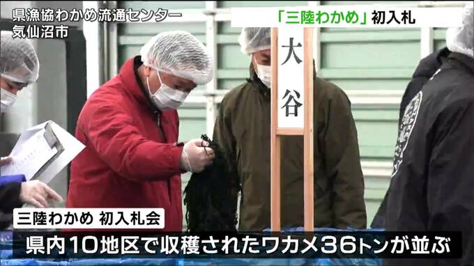 「三陸わかめ」として知られる特産の養殖ワカメの初入札会が、全国トップを切って宮城県気仙沼市で行われました。